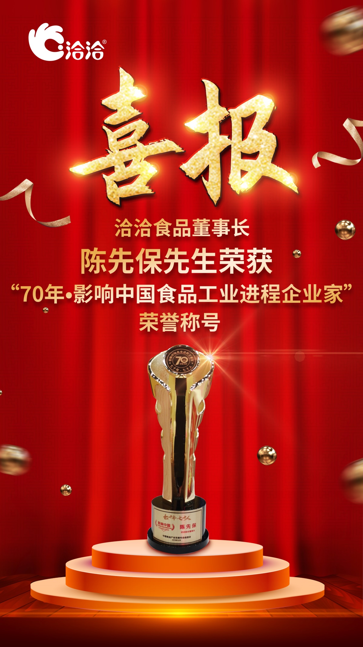 12月6日,“榮耀七十年·走進(jìn)新時(shí)代——2019中國(guó)食品產(chǎn)業(yè)發(fā)展年會(huì)暨2019(第四屆)華糖萬(wàn)商領(lǐng)袖大會(huì)”在鄭州隆重召開。70年?食業(yè)改變中國(guó),為表彰致敬70年來(lái)為中國(guó)食品工業(yè)做出杰出貢獻(xiàn)的企業(yè)家,大會(huì)開展了“70年?70人——全民推選影響中國(guó)食品工業(yè)進(jìn)程企業(yè)家”評(píng)選活動(dòng),眾多全國(guó)食品工業(yè)領(lǐng)域的杰出企業(yè)家成為推選人物。最終通過(guò)全民票選,洽洽董事長(zhǎng)陳先保先生獲頒“70年?影響中國(guó)食品工業(yè)進(jìn)程企業(yè)家”榮譽(yù)稱號(hào)。 榮耀70年,走進(jìn)新時(shí)代!奮戰(zhàn)20年,展望未來(lái),